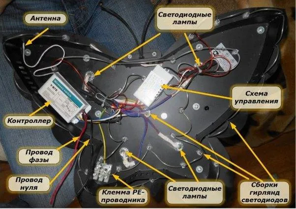 Как правило, в купленной люстре внутренняя разводка выполнена. Пользователю необходимо только подключить ноль и фазу на контроллер. Последняя идёт из выключателя.