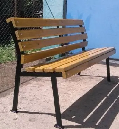 Деревянные рейки для сиденья могут быть заменены прямоугольными профильными трубами. В этом случае они просто привариваются к каркасу, а затем вся конструкция покрывается краской.
