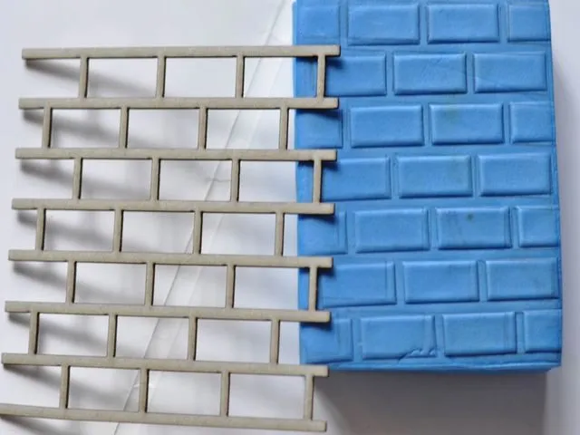 Для того чтобы сделать кирпичную кладку по данной технологии, вам понадобятся однотонные потолочные плитки из пенополистирола. Идеальный размер будущих изделий – 7 см на 15 см. В этом случае кирпичи на кладке будут выглядеть наиболее естественно. Чтобы вырезать такие кирпичики на плитке, ее сначала необходимо разметить карандашом или ручкой, затем зубочисткой пройтись по будущим разрезам и после этого острой плоской планкой «выдавить» кирпичики. Такую планку можно сделать, например, из крышки прямоугольной консервной банки.
