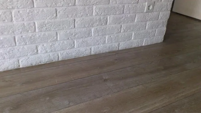 В идеале для новых помещений с бетонными или кирпичными стенами можно использовать саморезы с дюбелями. Если же по результатам осмотра стен оказывается, что нижняя кромка выровнена слоем штукатурки толщиной в несколько сантиметров, то ставить на линолеум пластиковые плинтуса, прибивать на стену саморезами, гвоздями или аналогичным крепежом нельзя. Под нагрузкой или по мере усадки линолеумного полотна декоративная накладка будет просто оторвана от точек крепления.