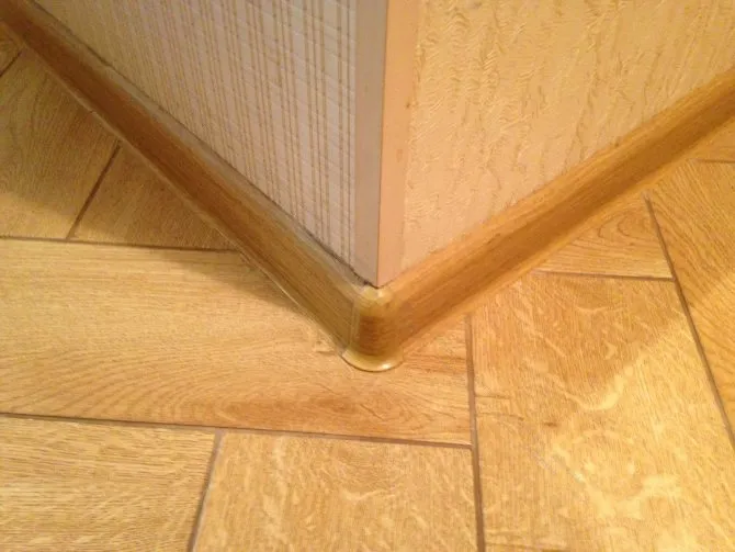 Если существуют две плоских перпендикулярных поверхности, напольный плинтус крепят: