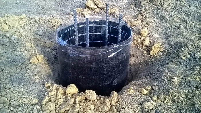Этот вид чаще всего применяют в частном строительстве благодаря относительной простоте устройства. Для этого под фундамент бурят скважины, в них опускают обсадные трубы из асбестоцемента или свернутый в трубку рубероид. Внутрь трубы вставляют арматуру и заливают бетон. В качестве опалубки также можно использовать полиэтилен или картон. Если грунт не сыпучий, такие сваи можно залить и без опалубки (сухим способом). В этом случае арматуру опускают прямо в скважину и туда же заливают раствор. Армируют бетон только в верхних 1,5-2 метрах.